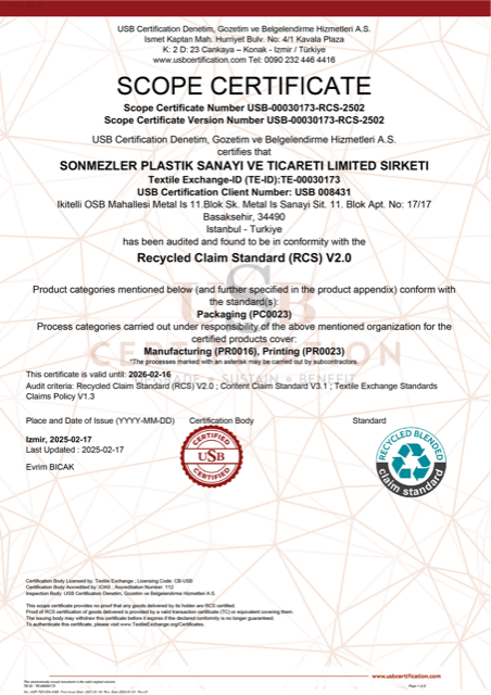 At Sonmezler Plastik, we place quality and environmental awareness at the heart of our production. Our manufacturing processes, which comply with national and international standards, are certified by the accreditations we hold. We take pride in offering our customers reliable, sustainable, and high-standard products